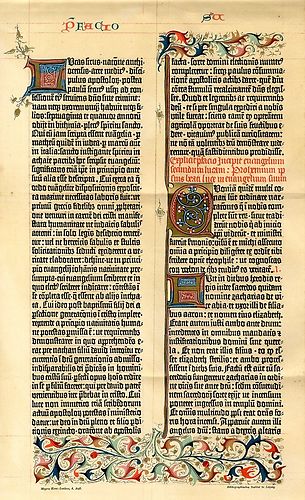Title (ebay affiliate link): 1887 GUTENBERG BIBLE PAGE 1455 FACSIMILE Antique Chromolithograph Print