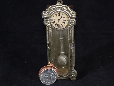 Title (ebay affiliate link): Embossed Antique Tinplate Dolls House Wall Clock w Pendulum & Paper Face 3 3/8"H