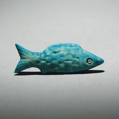 A BEAUTIFUL BRIGHT BLUE AMULETIC INLAY OF A FISH