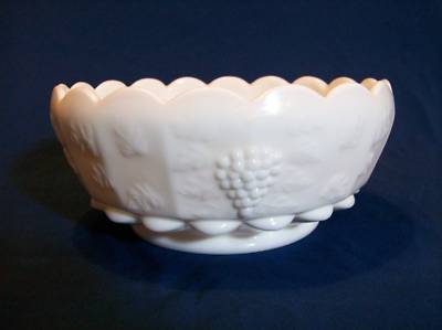 Westmoreland Cupped Bowl White Milk Glass Paneled Grape