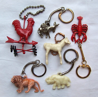 Title (ebay affiliate link): 6 Vintage Key Chain weather vane lobster donkey horse lion elephant ring fob lot