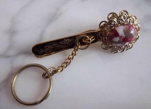 Title (ebay affiliate link): VINTAGE JEWELRY Key Chain Signed Kings Key Finder Red Marble Stone Gold toned Cl
