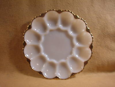 Milk Glass Deviled Egg Plate w/ Gold Rim
