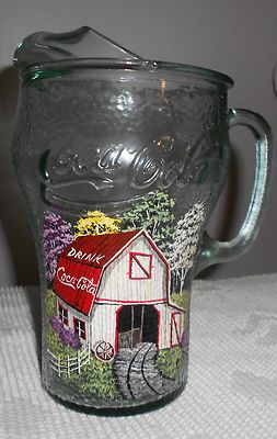 Coca-Cola Coke glass pitcher handpainted scene on pitcher collectible COKE