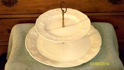 White Milk Glass Indiana Glass Panel Grape Tid-Bit Tray