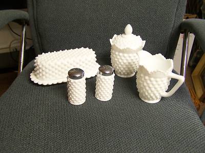Fenton Hobnail Milk Glass Butter,Sugar,Creamer,Salt & P