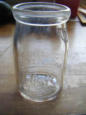 1943 cottage cheese jar ( looks like a milk bottle)SEE