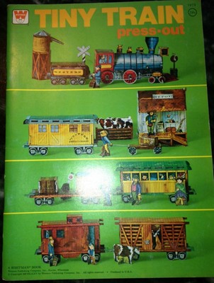 Title (ebay affiliate link): Whitmen Publishing "Tiny Train Press Out". Unused, complete book. 1975