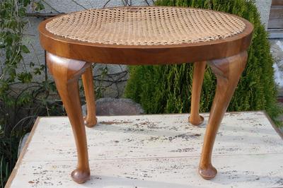 Antique Piano Stool Queen Anne Legs Rattan Seat Dressing Table Stool Minor Resto