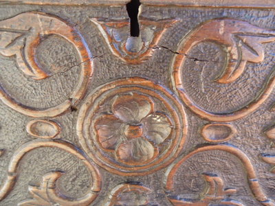 17TH CENTURY OAK CARVED, DRAW FRONT (N2)