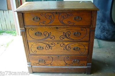ANTIQUE OAK DRESSER chest of drawers CARVED 4 drawer LOCAL PICK UP ONLY! low res