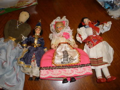 Antique doll lot of 4 cloth faces very ornate lenci?