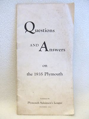 Title (ebay affiliate link): 1934 PLYMOUTH SALESMEN'S LEAGUE QUESTIONS ON 1935 PLYMOUTH AD 20 PAGE BROCHURE