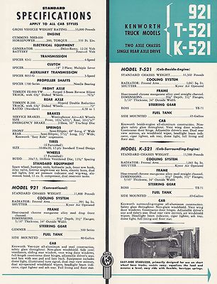 1956 Kenworth KW truck sales brochure 921 vintage dealer rare Narrownose old