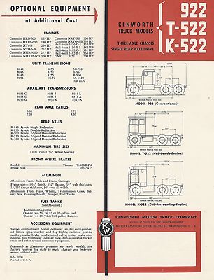 1956 Kenworth KW truck sales brochure 922 vintage dealer rare Narrownose old