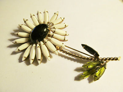 Title (ebay affiliate link): HUGE VTG JULIANNA RHINESTONE MILK GLASS DAISY FLOWER BROOCH 3" HI END SALE