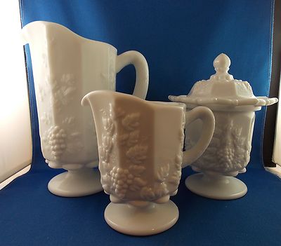 Title (ebay affiliate link): Vintage Westmoreland PANELED GRAPE #1881 Pitcher Cream & Sugar MILK GLASS