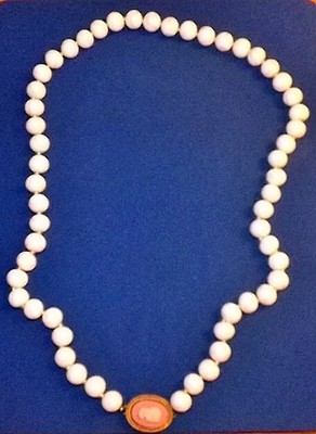 Title (ebay affiliate link): Vintage Exquisite Milk White Glass Pink Swirl Beaded Necklace With Cameo Clasp
