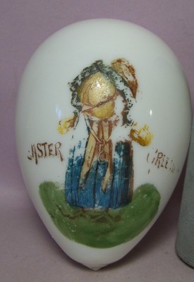 Title (ebay affiliate link): ANTIQUE 6 1/4" HAND BLOWN MILK GLASS EASTER EGG w/ Pontil & Paint Decoration