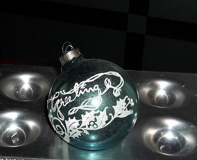 Title (ebay affiliate link): Vtg Greetings Stencil Glass Ornament with Candles Holly Blue