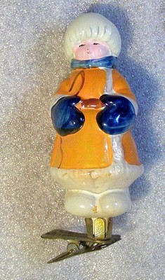 Antique Vintage Glass Xmas Christmas Ornament - Boy coachman on clip