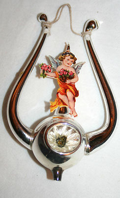 Title (ebay affiliate link): 1930s Harp with Indent. Paper Angel in Middle. Glass German Ornament.