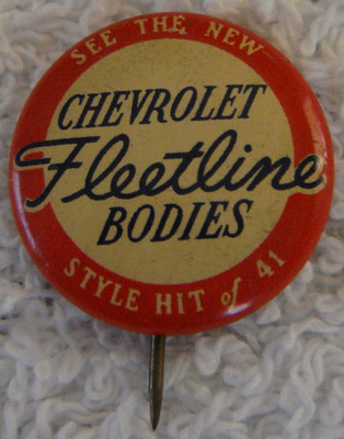 Title (ebay affiliate link): 1941 Chevrolet Fleetline Bodies 'Style Hit of 41' Litho Pinback
