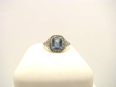 14K GOLD LADYS BLUE TOPAZ DECO RING NICE ANTIQUE !