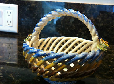 Title (ebay affiliate link): Ceramic lattice woven basket. May be Capodimonte or Goodfriend Espana.