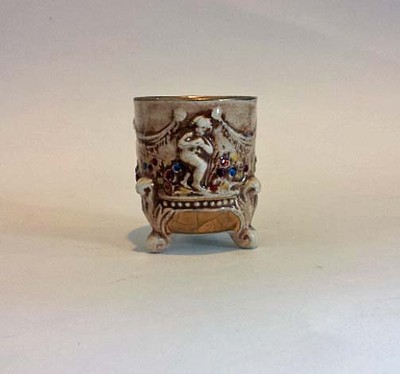 Title (ebay affiliate link): R. Capodimonte Ceramic Cup Vase Vessel Cherubs Gold Trim 3 Feet