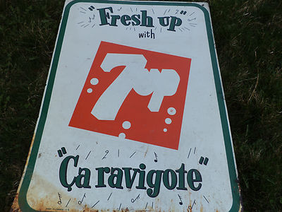 Title (ebay affiliate link): EXCELLENT OLD VINTAGE 7UP METAL SODA POP ADVERTISING SIGN