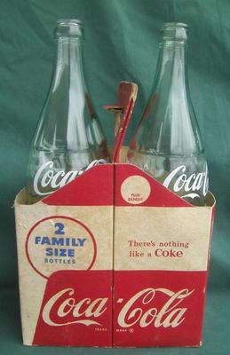 Title (ebay affiliate link): SET OF 2 10 OZ. COKE COCA-COLA BOTTLES FAMILY SIZE CARDBOARD CARRIER ADVERTISING