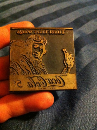 Thirst Takes Wings Rare Coca Cola Printing Block Rare WW2 Pilot Print Stamp