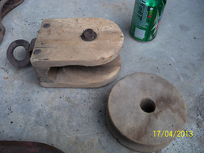 Title (ebay affiliate link): Antique Vintage Cast Iron & Wood Wheel Barn Pulley Old Farm Tool