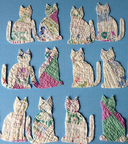 Title (ebay affiliate link): 12 Kitty Cat die cuts from cutter quilt Primitive applique Multi Purple Green