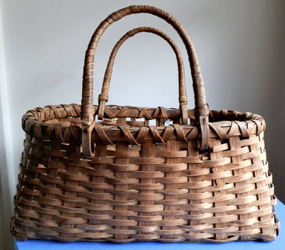 Title (ebay affiliate link): 19th CENTURY HANDMADE SPLINT BASKET DOUBLE SWING HANDLES