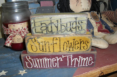 Title (ebay affiliate link): PRiMiTiVe SuMmEr/SpRiNg ShELf SiTtEr BLoCks (LaDyBuGs SuNfLoWeRs SuMmEr ThYmE)