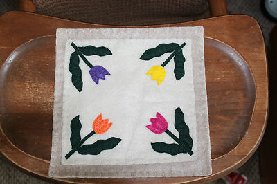 Primitive Spring Tulips Penny Rug Candle Mat