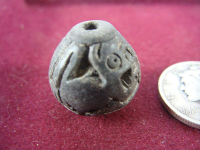 ANCIENT PRE-COLUMBIAN MANTENO 'CAT - PUMA' SPINDLE WHORL BEAD ECUADOR 200-500AD