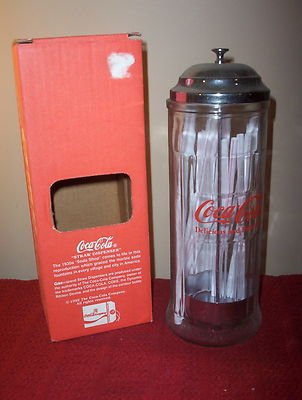 Title (ebay affiliate link): Coca-Cola Glass Soda Shop Straw Dispenser 1992 MIB