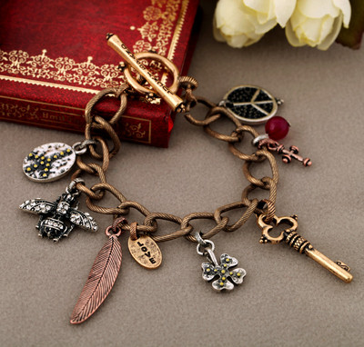 Title (ebay affiliate link): Antique Fashion Vintage Bracelets Anti-war Bee Key Feather Cute Pendant Bracelet