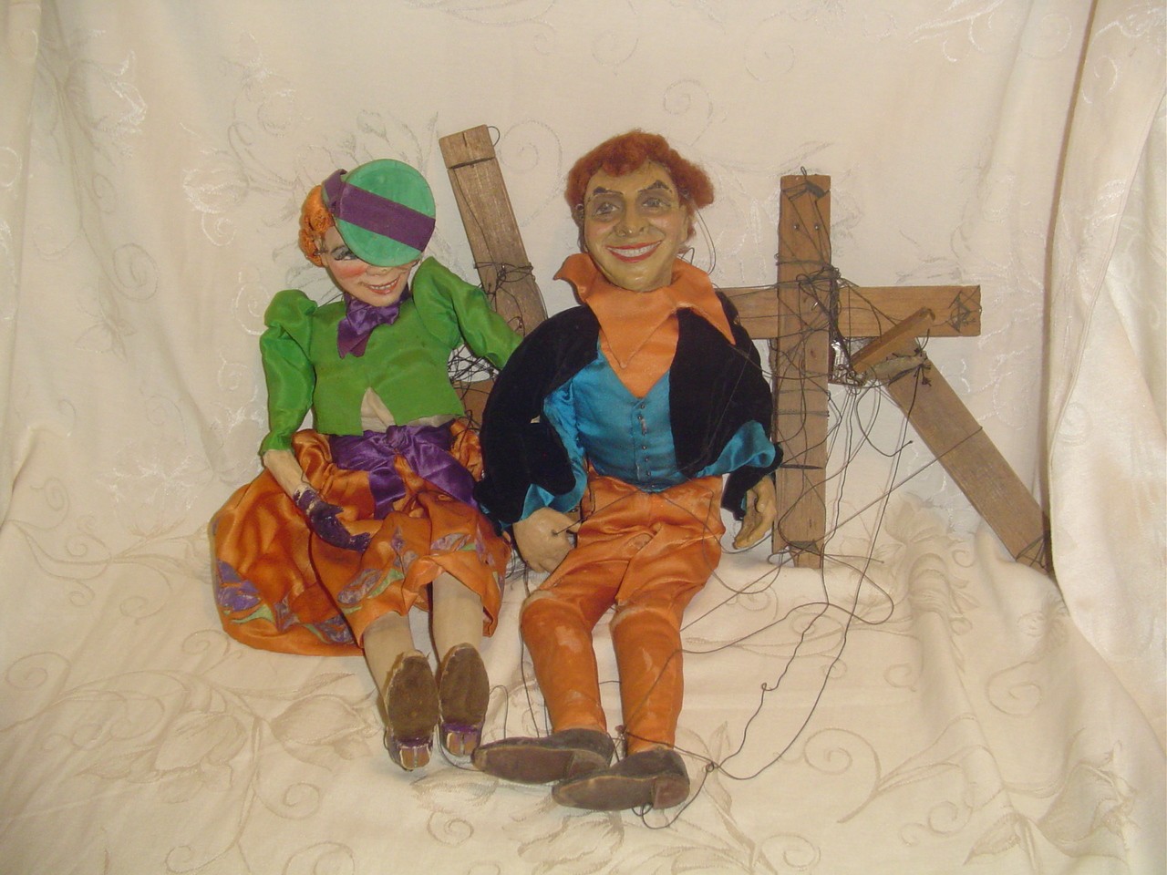 Title (ebay affiliate link): ANTIQUE PAIR COMPOSITION PEASANT PUPPETS MARIONETTES NR