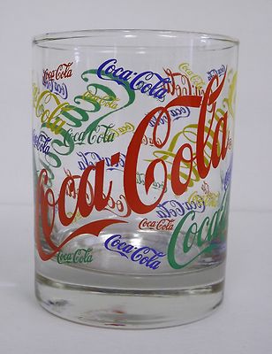 Title (ebay affiliate link): Vintage 1980s Multi Color Coca Cola Coke Logo Drinking Glass 12 oz.
