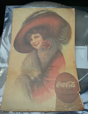 Title (ebay affiliate link): 1911 COCA-COLA Store Ad Lady mink coat soda fountain soft drink cardboard