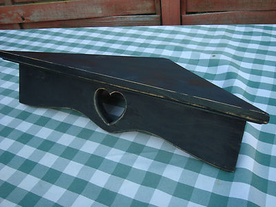 Title (ebay affiliate link): primitive country decor black distressed wood corner shelf rack heart cut out