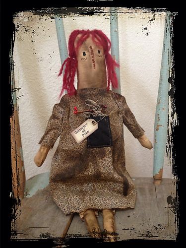 Primitive Grungy, Grubby spring raggedy ann doll, folk art, Flowers