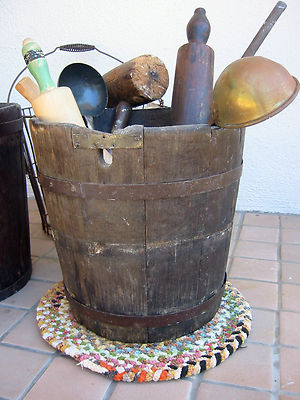 Title (ebay affiliate link): ANTIQUE PRIMITIVE WOODEN APPLE ORCHARD SAP BUCKET AAFA ~GREAT RUSTIC PLANTER BOX