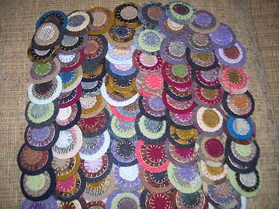 Wool Stash Penny Rug Sewn Circles- Triple stacked 25