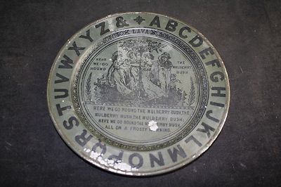 TIN LITHO LITHOGRAPH ABC ALPHABET PLATE ORIGINAL GO AROUND THE MULBERRY BUSH