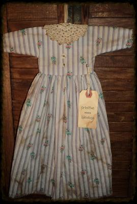 GRUNGY PRIMITIVE WALL~CUPBOARD DOLL DRESS PURPLE STRIPE FABRIC ~FOLK ART~DECOR
